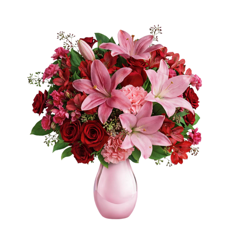 You will find all the shades of red and pink in this perfectly designed flower arrangement. Bright and cheerful - a brave choice to make someone's day special!